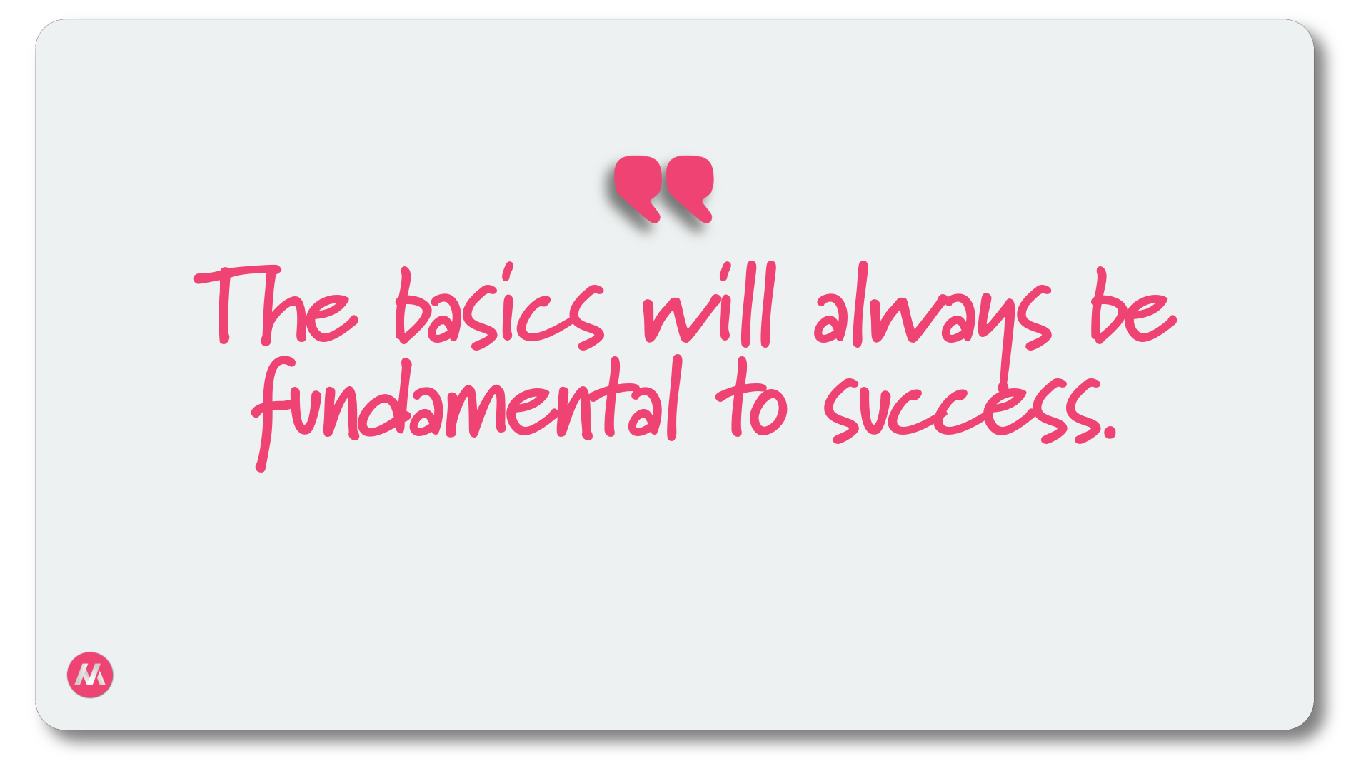 The basics will always be fundamental and a key ingredient for success. Basic sounds simple, but it's not easy. Basic feels boring, but it's quite consequential.